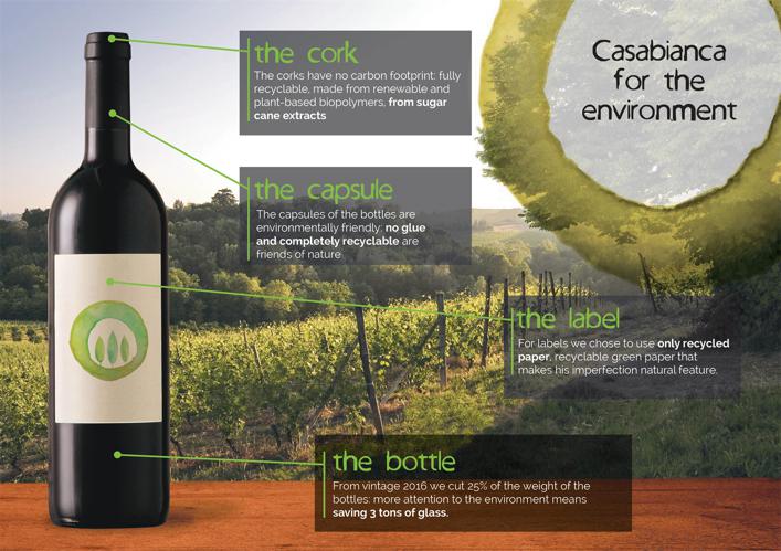 Glavni vodili vinske kleti sta inovativnost in spoštljiv odnos do narave, zato so tudi vsa vina Tenute Casabianca ekološko certificirana. Lahko se pohvalimo tudi s certifikatom VEGAN in prvim vegansko certificiranim Chiantijem.